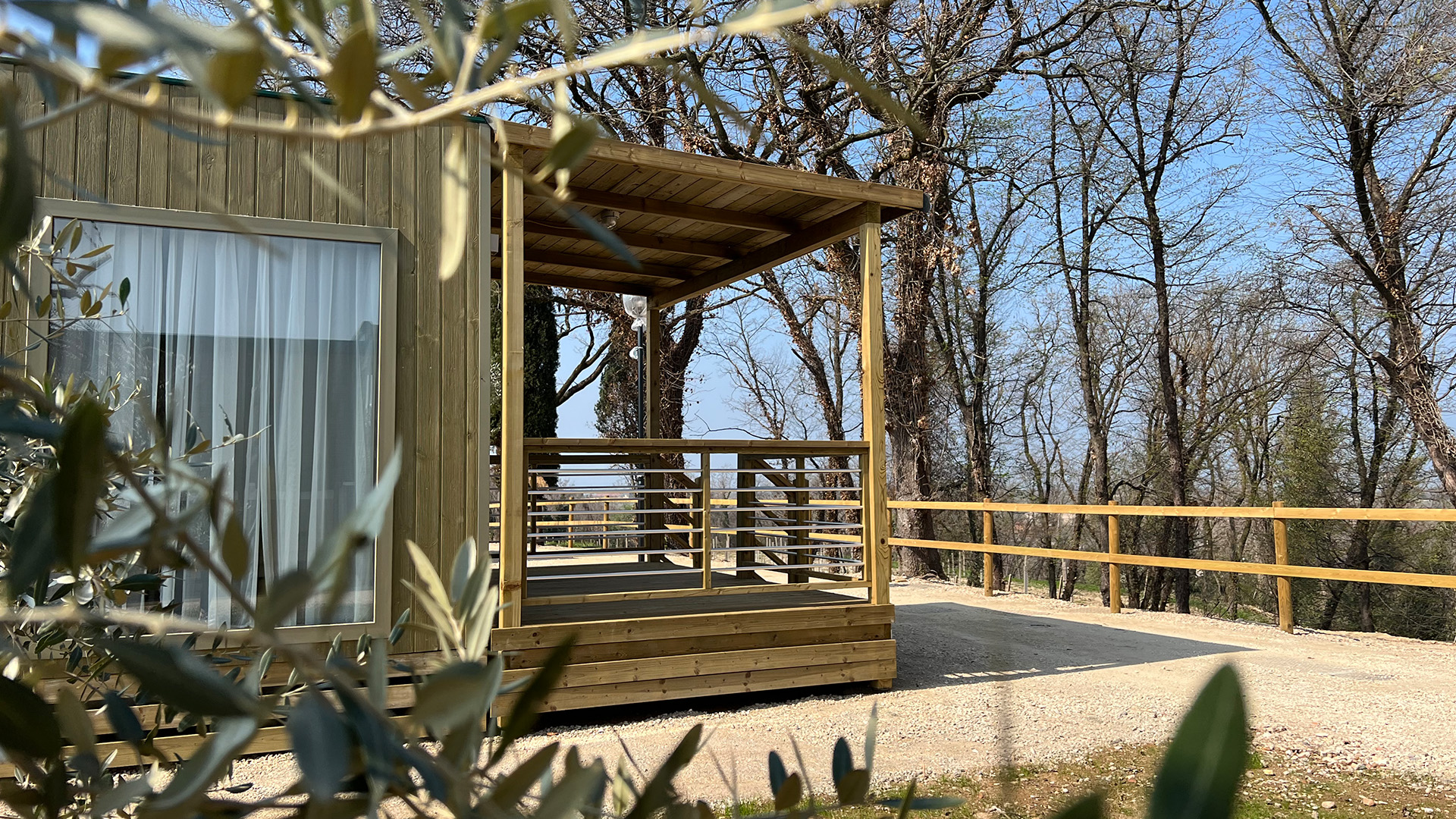 Le prime 4 Mobile Home del Agricampeggio Le Bucoliche immerse nella verdeggiante location delle colline di Colà di Lazise.